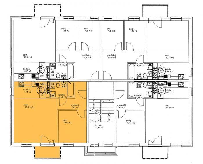 Mieszkanie nr 5 (wejście na lewo) z balkonem,piwnicą i miejscem parkingowym