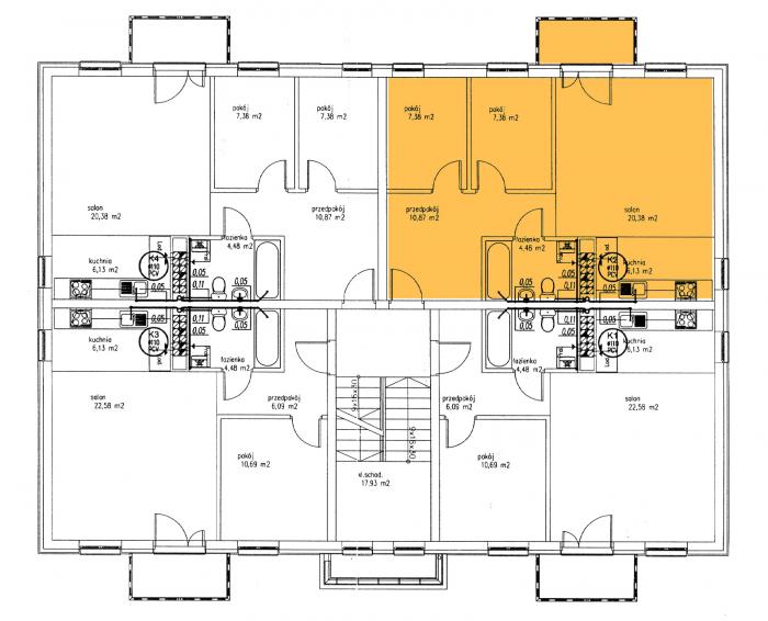 Mieszkanie nr 7 (wejscie na wprost)z balkonem,piwnicą i miejscem parkingowym